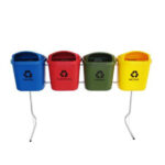Conjunto com 04 lixeiras para Coleta Seletiva 40l com tampa frontal em Polietileno, fixadas no suporte de ferro